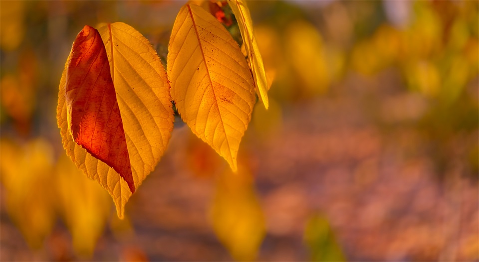 秋叶,从夏的一片绿色中滑落,走进了秋的诗行。叶儿不觉初冬至,尽将绿装染五彩。红色的、黄色的、紫色的、绿色的,那么坦荡,那么妩媚,那么恒长,深邃无边,无私多情,它们懒洋洋的躺在清脆的草丛里,就是一幅让人惊心动魄的油画。 只因枝头一片叶,才会美了一季秋!